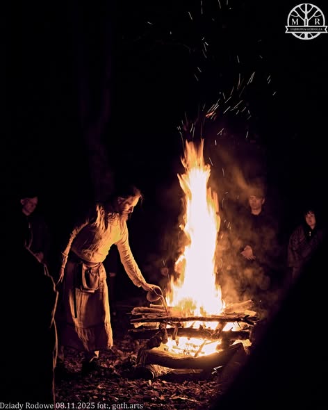 Náš zámer byť hosťami nám „gromada“ odobrila a tak sme v sobotu 8.11 vyrazili na sever. Schádzali sme sa ešte za vidna, precvičovali sa spevy, chystal oheň, pripravovali obetiny i oltár. Po zotmení vytvorením kruhu, očistením priestoru a zapálením ohňa začali obrady. Hovorilo sa k Bohom, silám. Po každom hovore sa do ohňa vkladala obetina. Nasledovali hovory k predkom, volanie na ich slávu. Každý v kruhu povedal niečo k predkom a následne vlial obetnú medovinu buď do Ohňa, alebo do Zeme. Obrad viedol žrec Bartosz Zawadzki, s ktorým som pre vás spravil krátky rozhovor.
